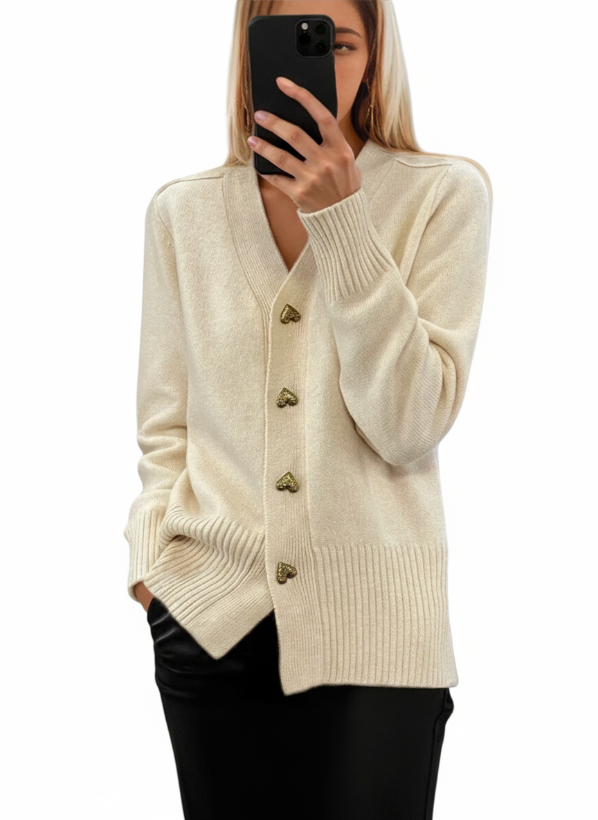El cárdigan Cyra elevará tu estilo con su toque de sofisticación y confort.